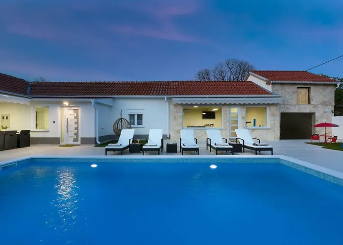 Die Unterkunft bietet einen Essbereich im Freien mit Ausstattung zur Kaffee- & Teezubereitung. Es gibt auch eine Mikrowelle, einen Wasserkocher und einen Kühlschrank, damit Sie sich Ihr eigenes Essen zubereiten können. Von der Villa sind es 10 Minuten mit dem Auto zum Flughafen Zadar. In dieser Villa gibt es auch einen Außenpool sowie Billard und die Gärten. Für die Unterhaltung der Kinder bietet diese Unterkunft Brettspiele und Spielsachen.